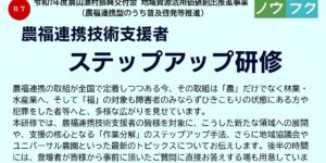 この度、農福連携技術支援者ステップアップ研修を開催します。 …